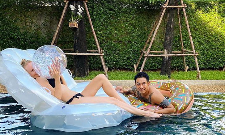 บอย พิษณุ ชวนภรรยาสุดสวยชาวต่างชาติ สุดสวยได้ลงเล่นในสระว่ายน้ำในบ้านที่สวยเหมือนรีสอร์ท ซึ่งหลายๆคนแอบส่องสาวอแมนด้า